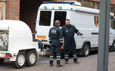 Omkring en times tid var Jernbanegade i Brande i går afspærret, medens ammunitionstjenesten med en