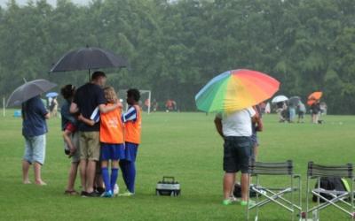 Kort efter kl. 17 ramte første del af det varslede skybrud Brande efterfulgt af tordenvejr